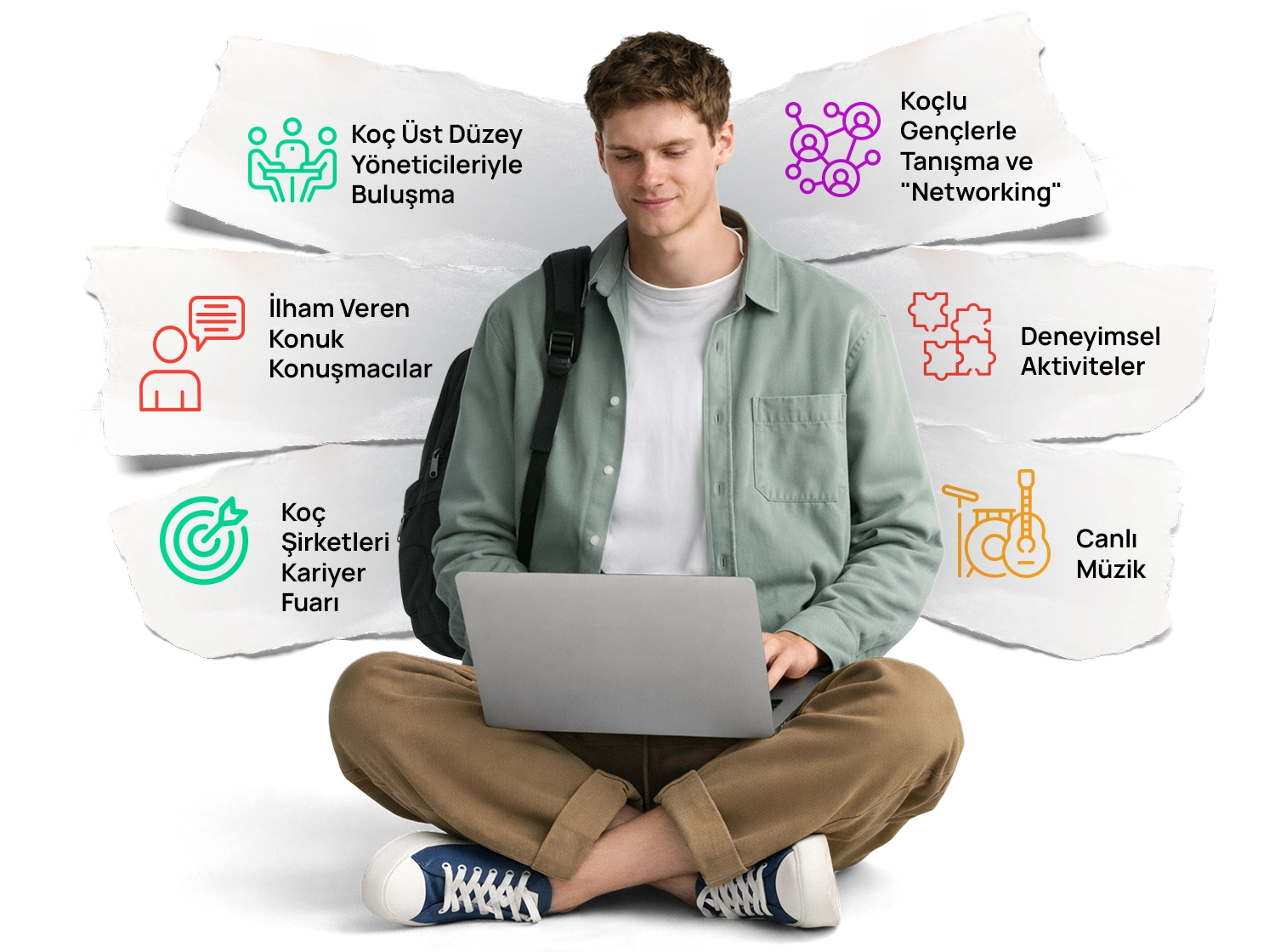 Koç Topluluğu şirketlerini yakından tanıyacağın; Koç üst düzey yöneticileri ve ilham verici konuk konuşmacılarla buluşacağın, gün boyu keyifli aktiviteler ve canlı müzik konseri ile kariyer ve eğlenceyi bir arada bulacağın zirve seni bekliyor.
